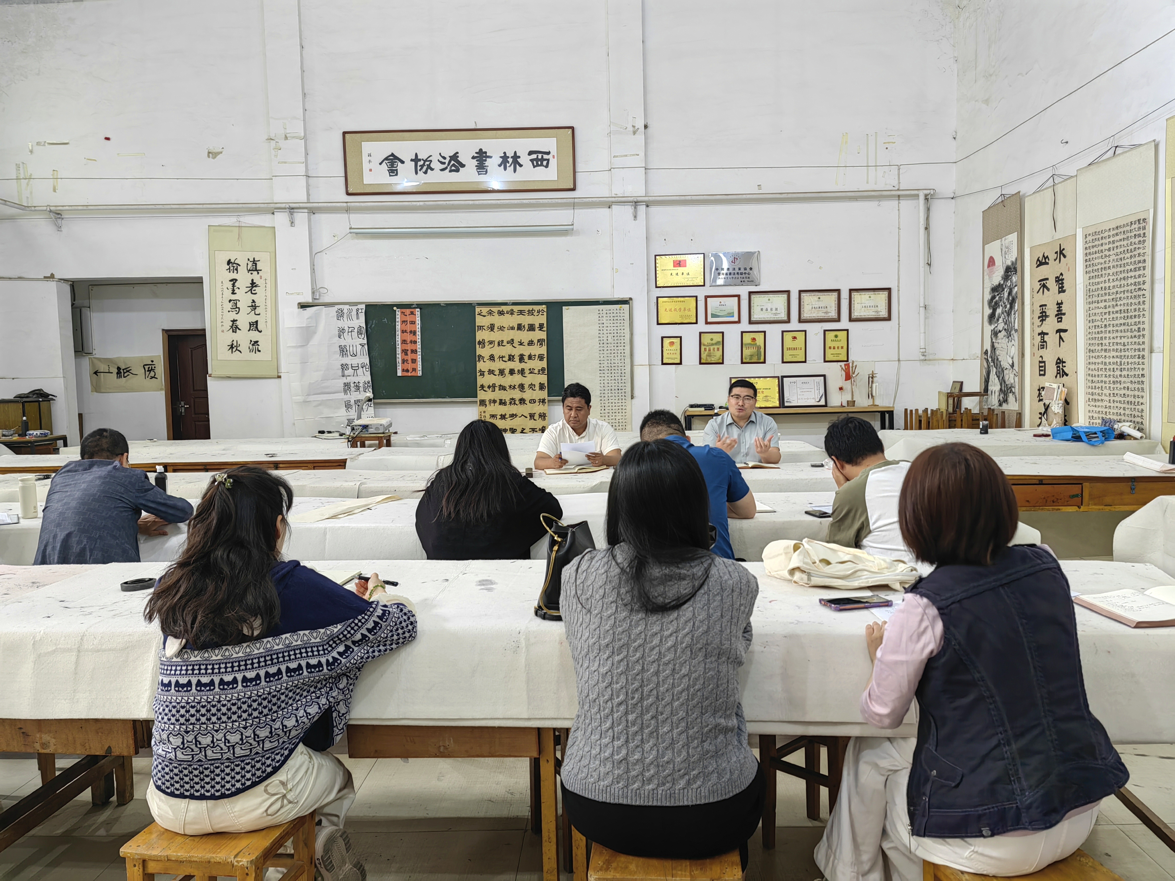 4 月 28 日上午,太阳成集团tyc522cc在诗书画研究院书法大教室召开专题会议,为“五一”假期及学期关键阶段的员工教育管理工作谋篇布局。公司党委书记张德国出席会议并作工作部署,党委副书记李浩主持会议。