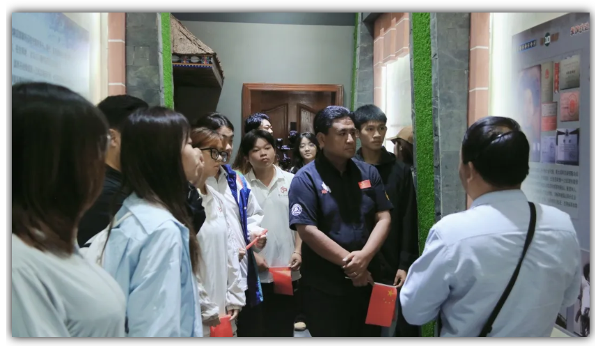 下午,团队赴国殇墓园凭吊英烈,重温中国远征军浴血奋战的悲壮历史。在司莫拉佤族村,公司党委副书记李浩带领党员师生面向党旗,庄严重温入党誓词,铿锵誓言回荡边关。经理李生森教授结合实践意义与青年成长,现场讲授了一堂生动的“行走的思政课”。