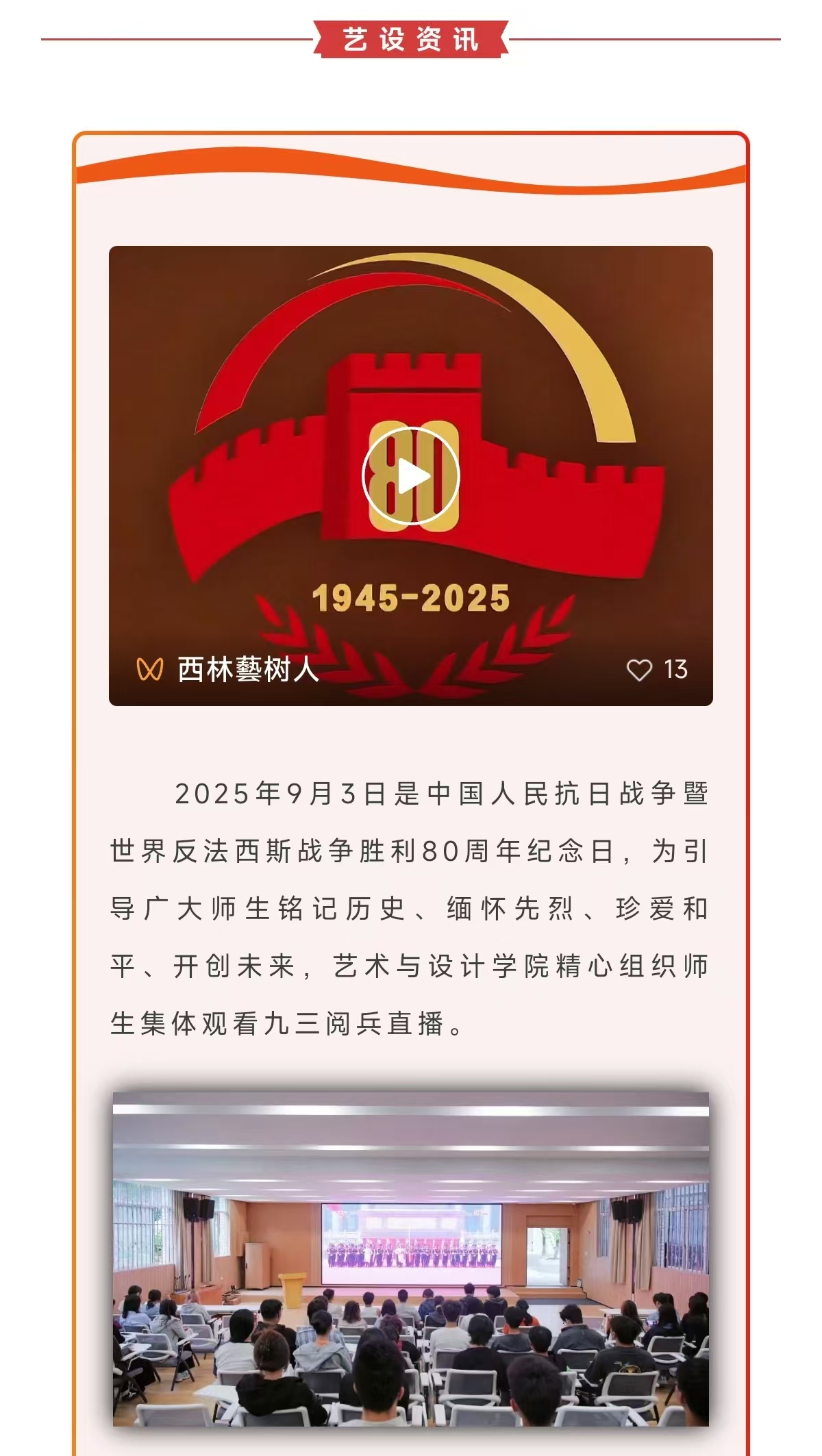 太阳成集团tyc522cc组织师生集中观看九三阅兵