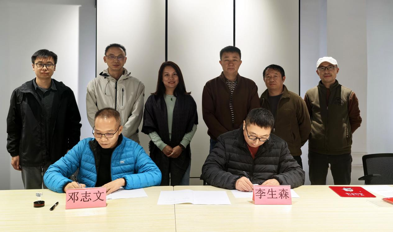 太阳成集团tyc522cc经理李生森,产品设计系主任周雪冰、产品设计系教授黄圣游、副教授徐俊华;瑞丽市志文木业有限公司董事长邓志文、技术总监陈艳婷等双方代表出席签约仪式。