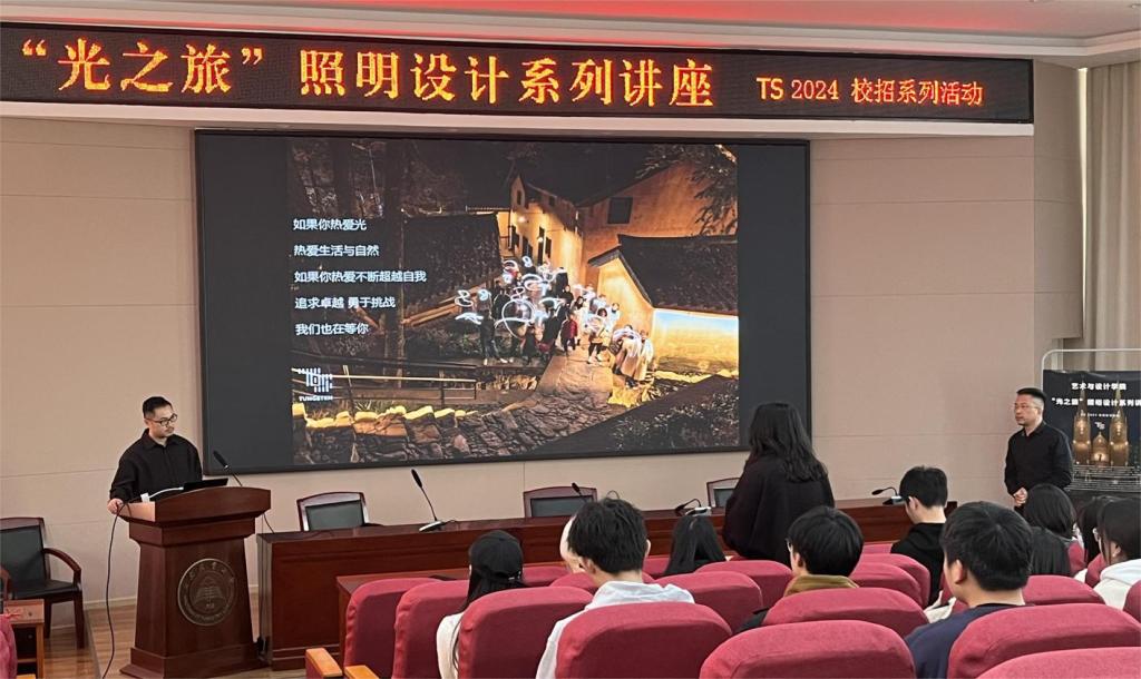 12月15日下午,TS倘思照明公司创始人钟鸣与经理吴蓉携手来到tyc522cc太阳成集团,为师生们带来了一场令人振奋的“光之旅”照明设计讲座。