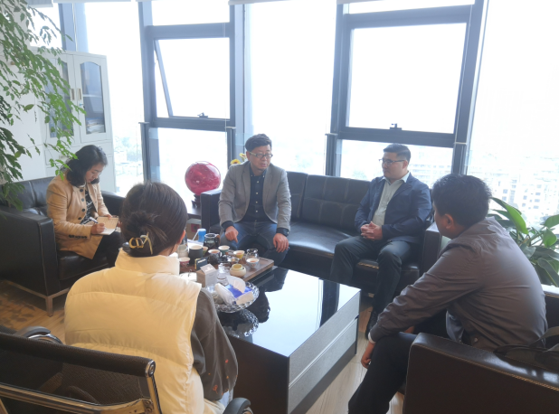 经理廖勉代表企业对张德国一行表示热烈欢迎,并详细介绍了公司的发展历程、发展理念、战略定位、人才需求等情况,希望在项目合作、员工实习就业等方面加强与公司全方位合作。