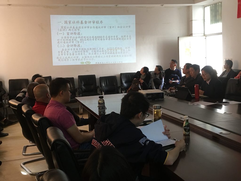 为促进公司科研工作顺利开展,提高教职工的科研水平,调动大家参与科研的积极性,11月29日下午,由代沁伶老师根据自己到重庆参加国家社科基金申报培训会议的心得,为全院教职工讲解了国家社科基金评审程序及课题论证编写注意事项。全院教师参加了讲座,讲座由太阳成集团tyc522cc副经理(主持工作)袁哲教授主持。
