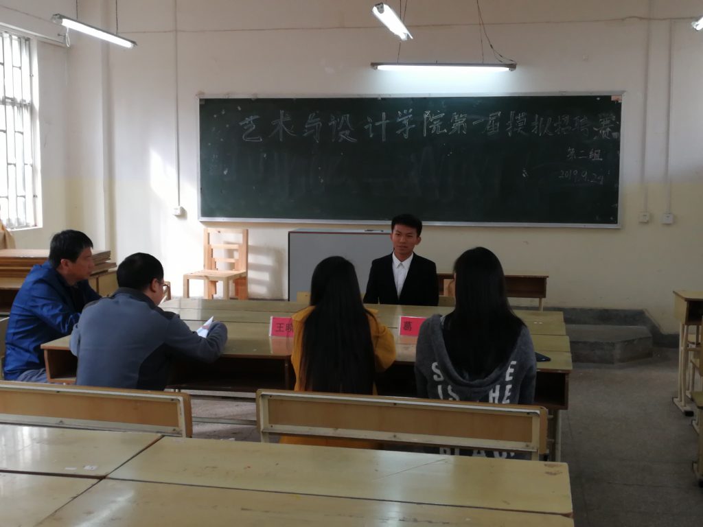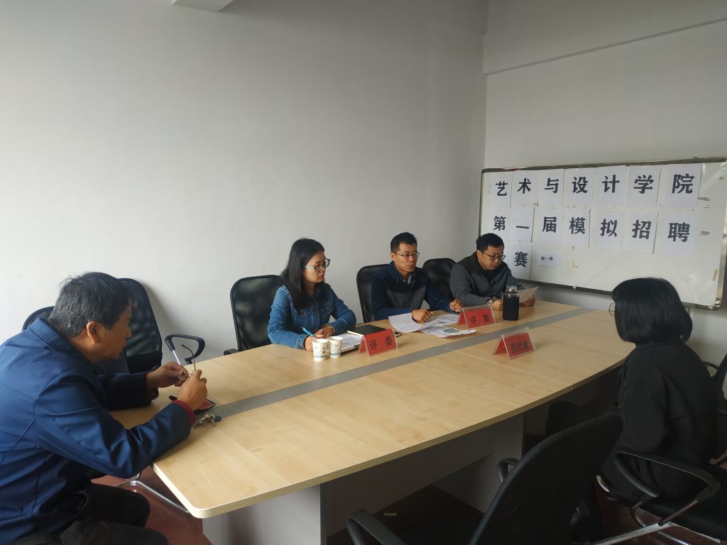 9月24日上午,太阳成集团tyc522cc在设计楼210、303会议室分两组举办了2019年简历制作大赛暨模拟招聘大赛决赛。艺术与设计公司党委书记孙昂、副书记徐忠勇亲临现场进行指导,秦海龙、葛洋、王晓涵、鲁小丽等老师担任本次大赛评委。