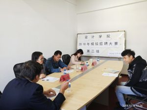 10月18日上午,设计公司在设计楼210、303会议室分两组举办了2018年简历和作品集制作大赛暨模拟招聘大赛决赛。设计公司党委书记孙昂、副书记徐忠勇亲临现场进行指导,秦海龙、葛洋、王晓涵、鲁小丽、潘昭宇等老师担任本次大赛评委。
