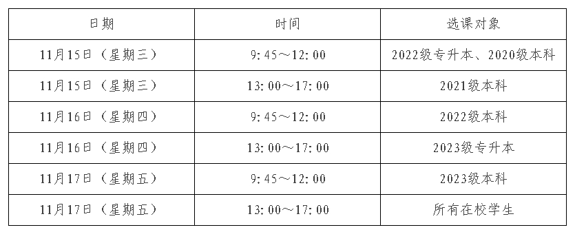 三、选课时间:11月15日9:45——11月20日17:00。