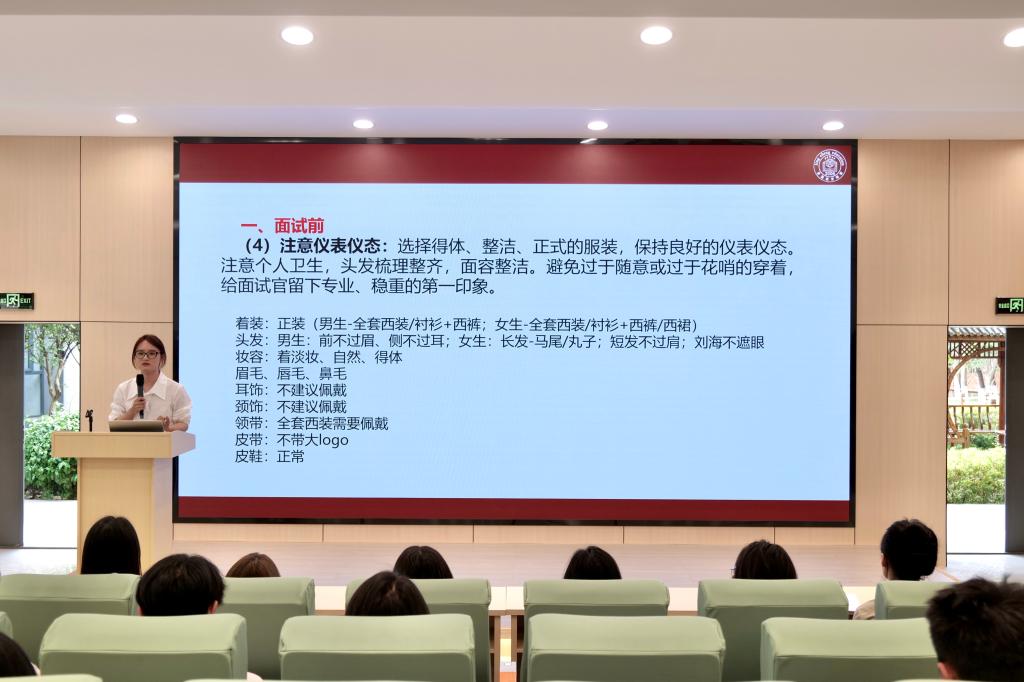 宣讲会分为两个阶段。第一阶段由和礼佳带来“老员工求职面试技巧、礼仪礼节与注意事项分享”专题辅导,从简历制作、面试礼仪、沟通技巧等方面为员工提供了实用的求职指导,助力员工提升就业竞争力。第二阶段由田超合自身在校经历与创业历程,分享了行业发展趋势与企业人才需求,鼓励学弟学妹们勇于尝试、积极就业,并详细介绍了公司的招聘岗位、职业发展路径及福利待遇。​