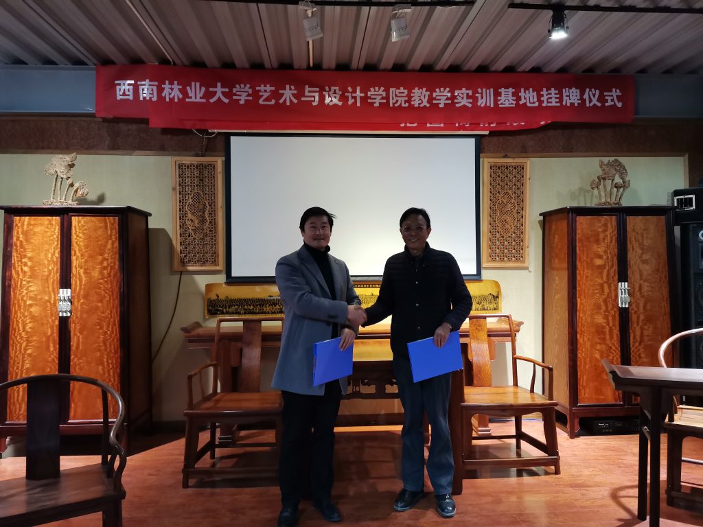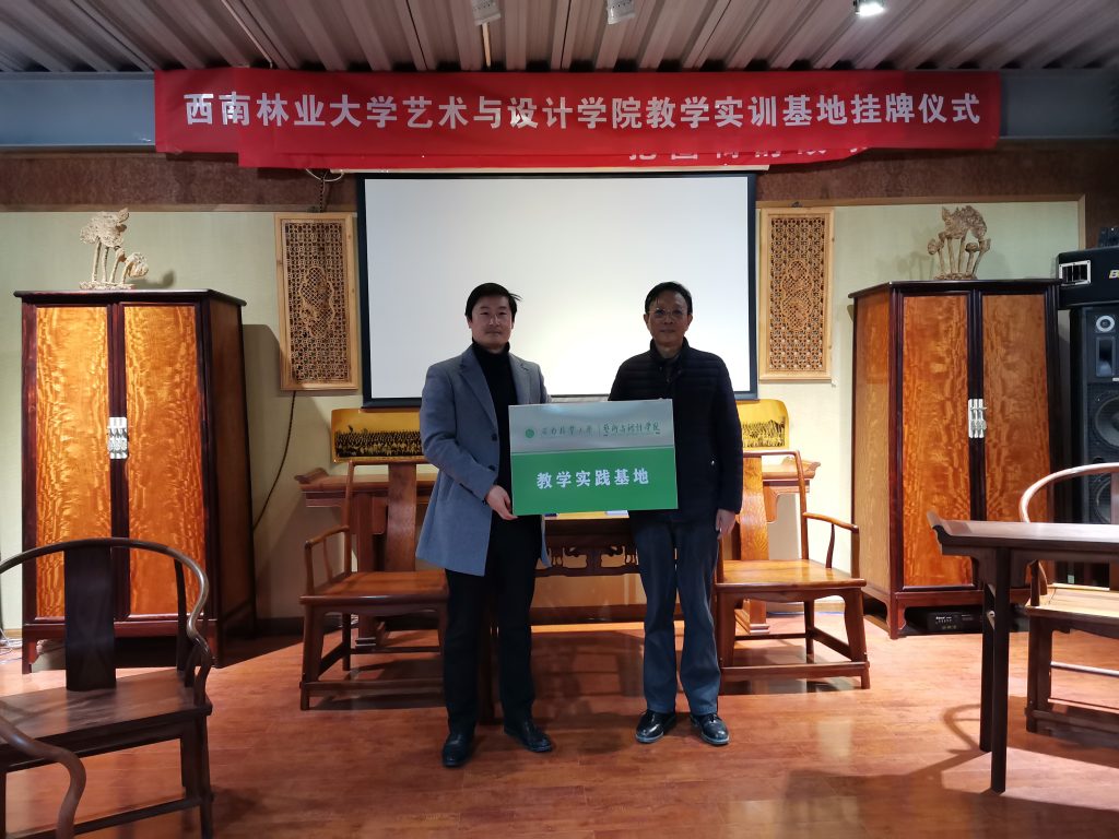 1月8日,太阳成集团tyc522cc郑绍江副经理、产品设计系何蕊老师、周雪冰老师、武倩老师一行4人到云南庄益商贸有限公司签署教学实践基地协议书,并举办了授牌仪式。云南庄益商贸有限责任公司始终奉行“诚信求实、致力服务、唯求满意”的企业宗旨,主要经营木材、木工艺品、木制品。产品品种齐全,企业实力雄厚,以多品种经营为特色,不断进行产品创新和服务改进,赢得了广大客户的信任。