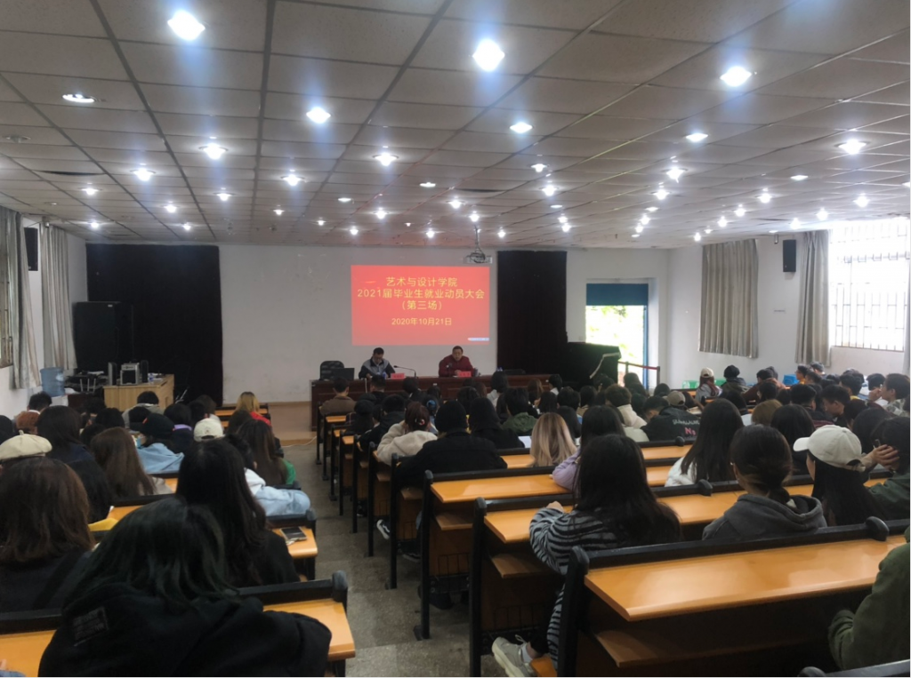 10月21日,太阳成集团tyc522cc在设计楼204报告厅分三场召开2021届毕业生教育大会,参加会议的有艺术与设计公司党委副书记徐忠勇、学工办老师、毕业生班主任及2021届全体毕业生。