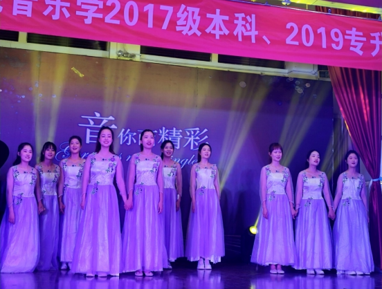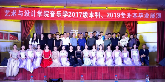 毕业展演分上下半场,由2017级音乐学本科和2019级专升本毕业生共同完成。展演节目包含了声乐演唱、器乐演奏、舞蹈表演三个音乐学专业的主要方向,共计29个精心编排的节目。其中小合唱《萱草花》、《匆匆那年》,舞蹈《心声》,对唱《不忘初心》,表演唱《不能尽孝愧对娘》、《洪湖岸边是我家》等节目不仅专业质量较高,也体现了音乐学专业注重课程思政,通过作品学习培养员工树立爱党爱国思想的教学思路和方向。精彩纷呈的表演一次又一次把全场气氛推向高潮,在场领导老师和员工掌声不断,热情高涨!两场展演结束时员工精心设计了惜别母校、难忘师恩环节,真挚的情感也让在场嘉宾为之动容,笑容虽在脸上,泪已在心中流淌成河。